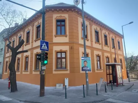 | Tájolás | Utcai sarok elrendezésű ablakok, udvari bejárat |